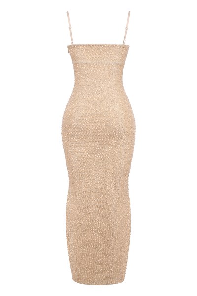 The pencil silhouette is defined by the back split for ease of movement and this glamorous dress will hug your curves so elegantly. The barely there straps adjust for the perfect fit and it zips to the side for easy on. Look your most glamorous and style with neutral vertiginous heels like 'Marivel'.