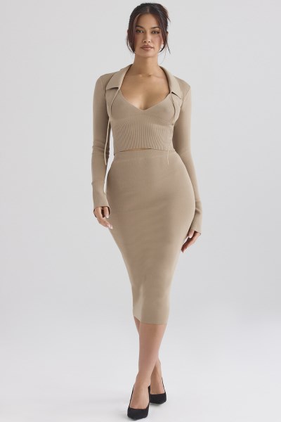 Heather Camel Knit Midi Skirt