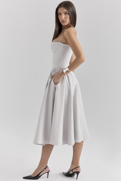 Dressing up is always fun in the 'Samaria' Dress. This elegant midi-length style is made from a soft peached twill with panels in the skirt creating a soft volume (there's even secret side pockets). The bodice is boned in a way that expertly hugs your figure and the spaghetti-style straps are a cute nod to 90s styling. At House of CB, fit is everything – this one is available in two cup sizes and features a centre back zip. Style the 'Samaria' with statement boots and leather jackets for a dressed down option, or take it up a notch with a simple heel for evening plans –  you'll be dancing all night long in it, give it a whirl. For the perfect fit, our A-C cup girls will want to go for our 'Regular Cup' option, and our 'Bigger Cup' will best suit our D-E cup girls. Made with Lyocell, which is a natural fibre made from regenerated cellulose. Known for its soft and breathable properties. WHERE TO WEAR: