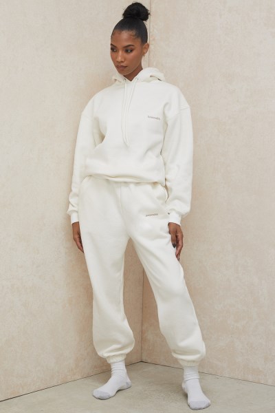 Our 'Sky' joggers are cut from our ultra premium quality heavyweight fleece back jersey with a flattering elasticated waistband and cuffed hems. Featuring a three pocket style and our HouseofCB logo to the front, they are cut with a loose comfortable fit that looks great styled up or down. Team up with our 'Halo' Off White Oversized Hoodie for warm winter dressing and add our 'Hero' jacket for an extra cool vibe. See the whole Sweats collection here Made from 100% cotton fleece back jersey. Stretch Factor: 3/3 Designed by House Of CBSee more Trousers here Length: Approx 105cmInside Seam Length of Trousers: Approx 71cmMaterials: Brushed back cotton (100% Cotton)