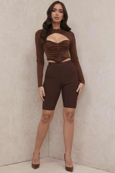 At HOCB we pride ourselves on comfort and quality being the utmost importance and our 'Verona' shorts are all that. These 90's inspired shorts are cut from our incredible bandage fabric with a ribbed texture and a second skin fit that gently shapes your tummy, hips and thighs and sits at the natural waist for super cinching and added comfort. The styling options are endless and we love these teamed with anything from crop tops, bodysuits, sweatshirts or peeking out from under an oversized cardigan such as 'Celine' for the perfect casual weekend dressing or simply lounging around at home. They have a zip to the back for easy on. Made from stretch ribbed bandage fabric. Stretched Factor: 3/3 Designed For House Of CBShop more Shorts here Length: Approx 56cmInside Seam Length of Trousers: Approx 26cmMaterial: Bandage (90% Polyester, 9% Rayon, 1% Elastane)Stretch Type: Very StretchyGentle Dry Clean Only Model is 5 ft 8 and wears size XS Colour may vary due to lighting on images. The product images (without model) are closest to the true colour of the product. Item runs true to size chart and is cut to suit our size chart. Please refer to our size chart for the best fit. Do not size up or down.