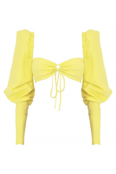 FREE DELIVERY ON YOUR ORDER Description Pretty and chic are two concepts that blend beautifully into our spring collection and 'Tough Love' brings fresh citrus tones in a vibrant lemon. It is cut from our crisp and fresh cotton and has feminine puff sleeves that frame the sexy bralette style…